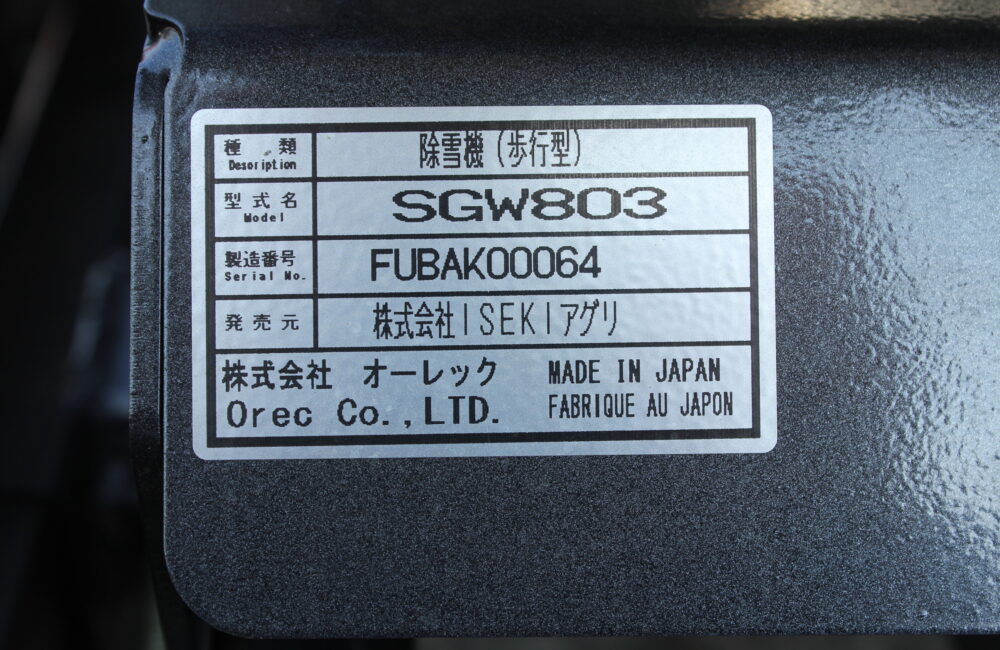 イセキ 中古 自走式ミニ除雪機 SGW803