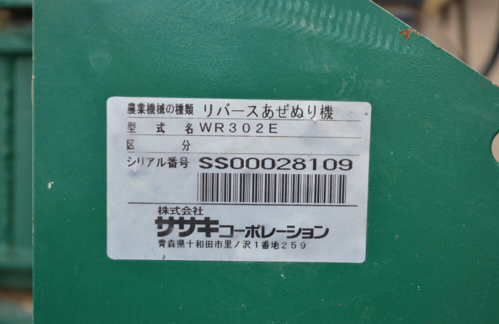 ササキ 中古 リバースあぜぬり機 WR302E わけあり品