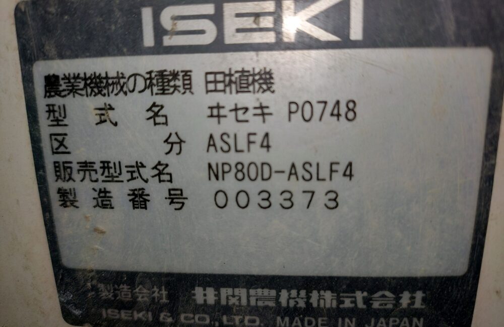 イセキ 中古 田植機 NP80D