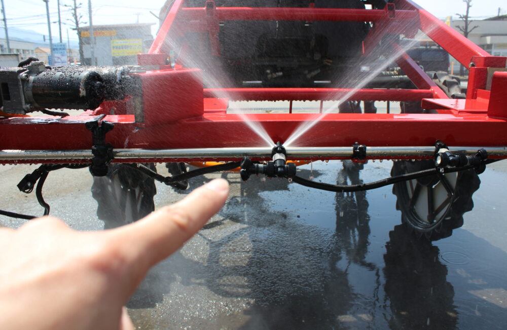 ●進行方向の右側と中の噴霧がパイプ割れにより漏れ出して噴霧なりません