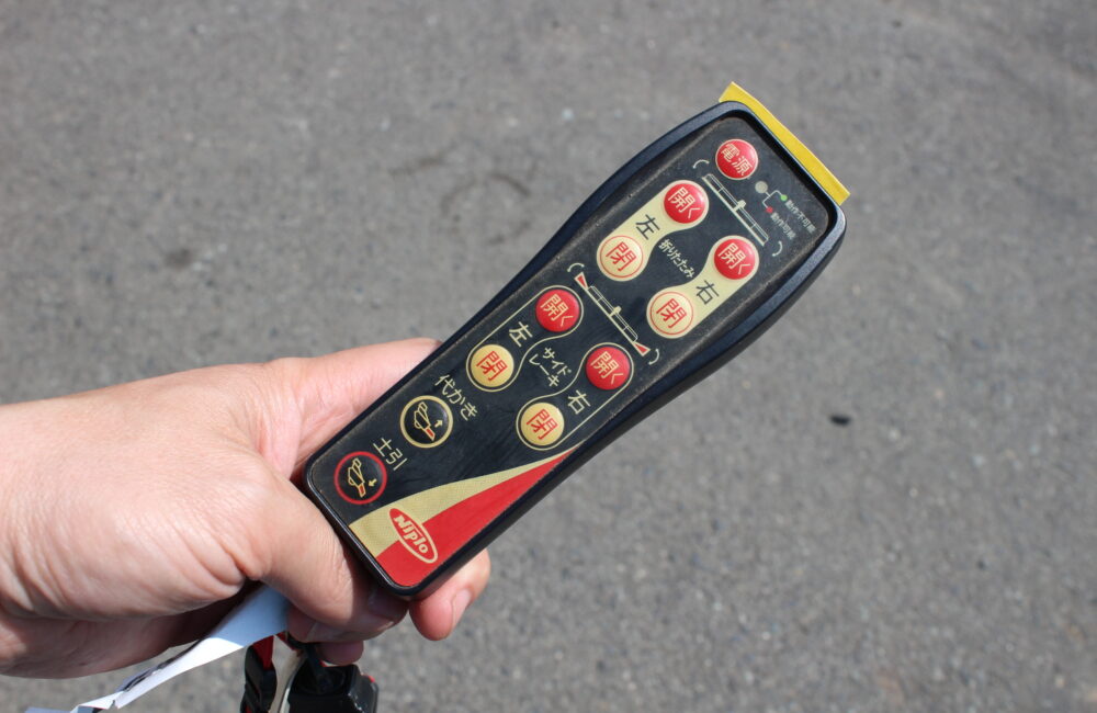 〇通電(チャージャーにて)させリモコン反応確認OK(土寄せ代掻きの切り替え可動)