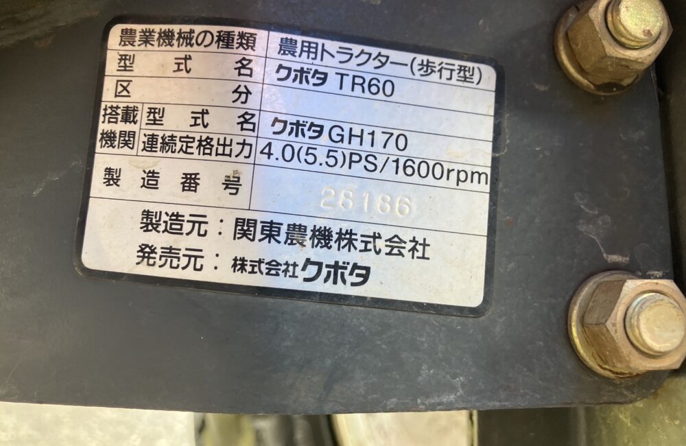 クボタ 中古 管理機 TR60