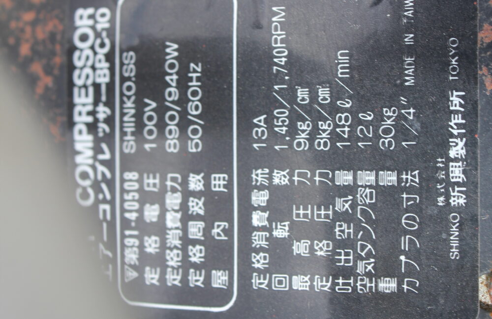 シンコウ 中古 エアーコンプレッサー BPC-10