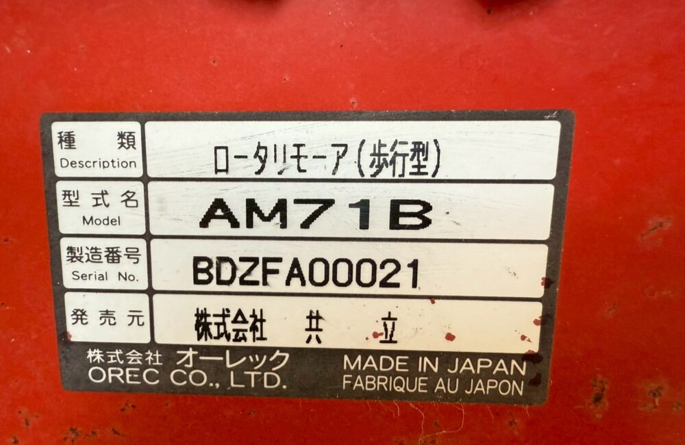 鹿児島発 オーレック 中古ロータリーモア(歩行型)