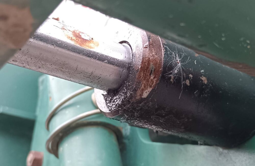 ●スライドシリンダーからオイルにじみが見られます。(写真9枚目参照)