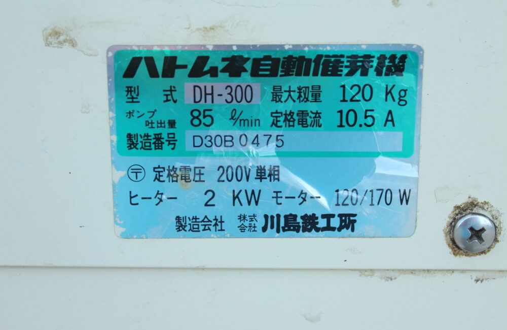 タイガーカワシマ 中古 催芽機 DH-300
