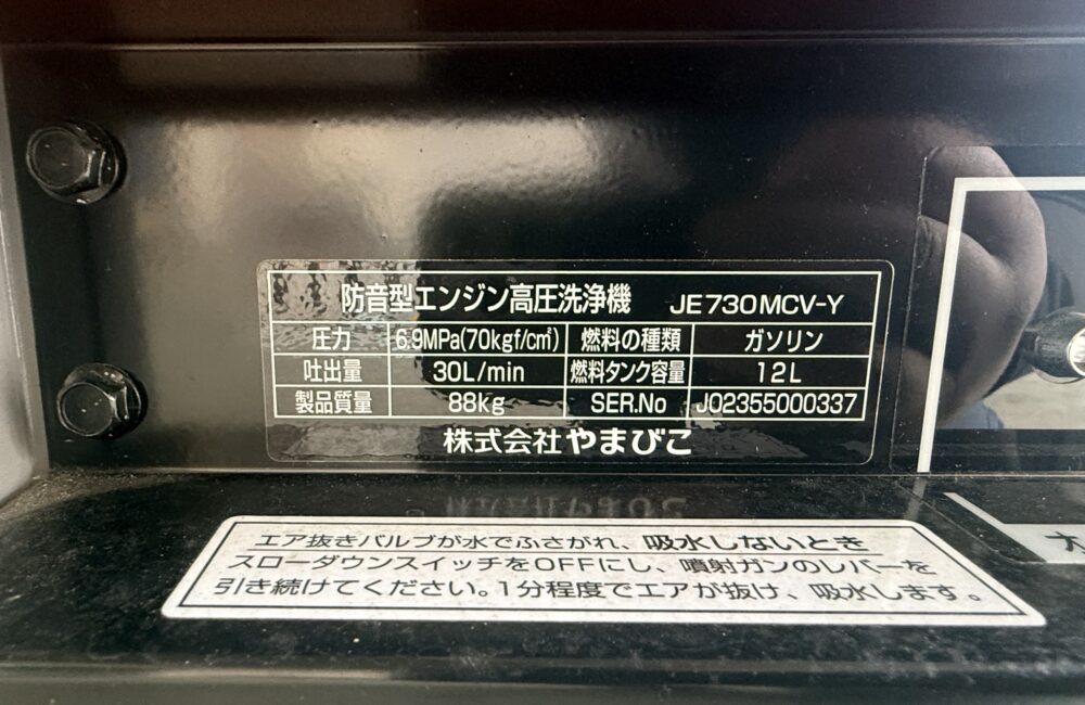 新ダイワ 中古 防音型エンジン高圧洗浄機 JE730MCV-Y