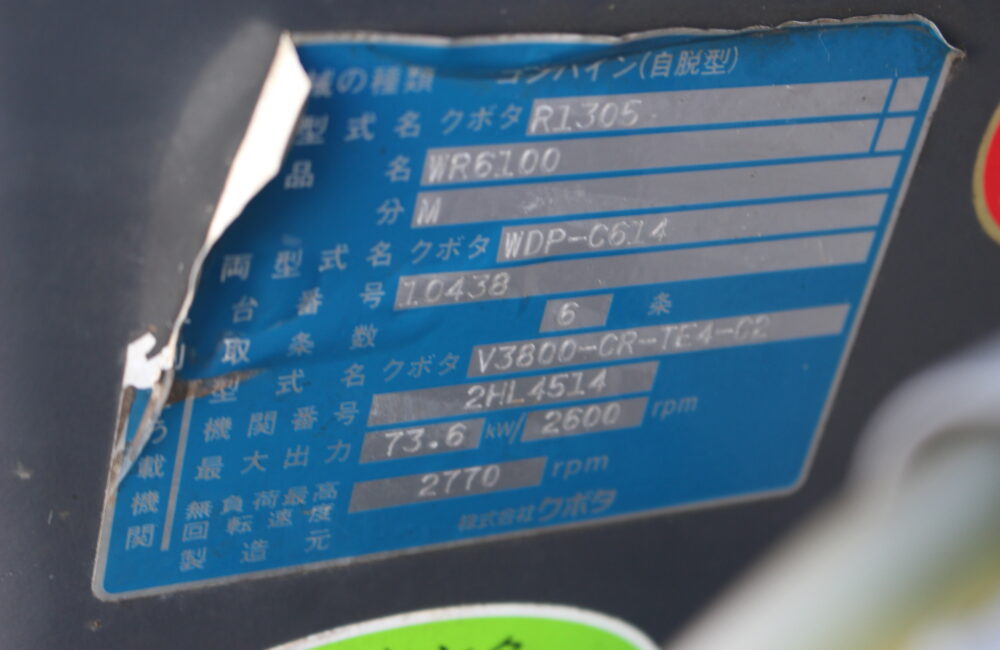 クボタ 中古 コンバイン WR6100M