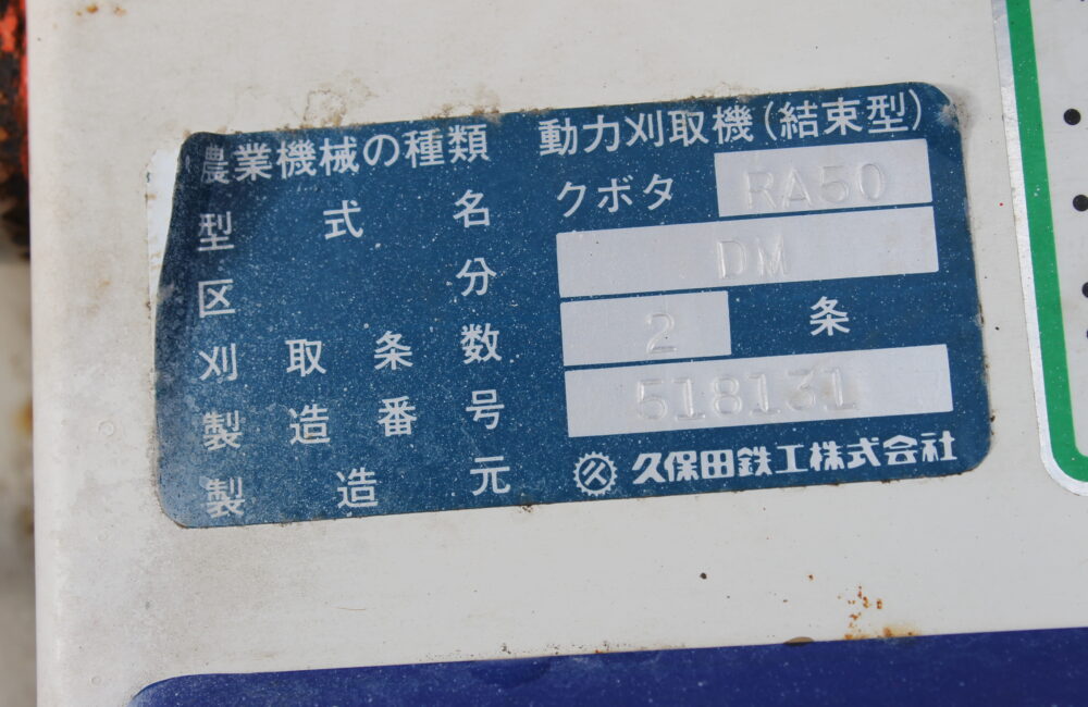 クボタ 中古 バインダー RA50-DM