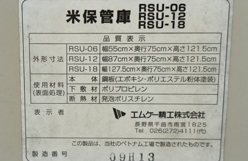 エムケー精工 中古 米保管庫 RSU-12