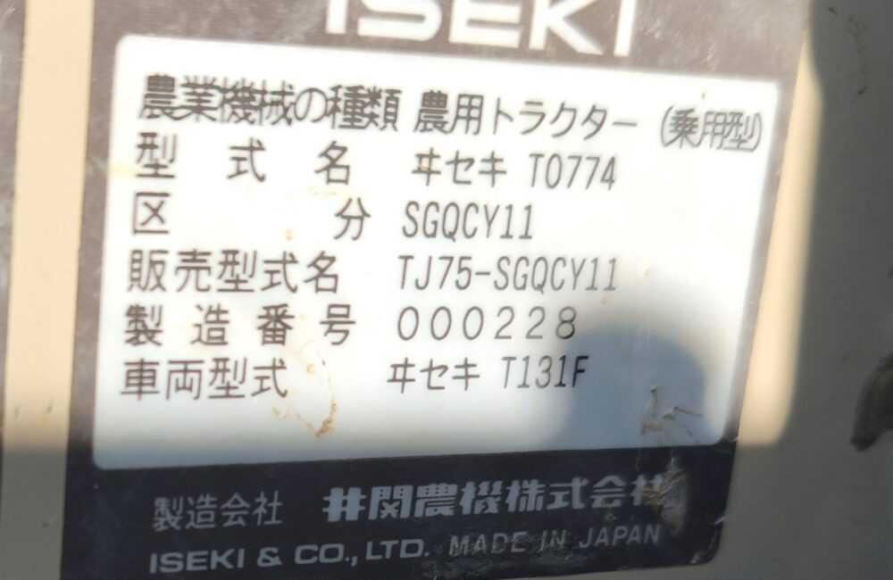 イセキ 中古 トラクター TJ75-SGQCY11