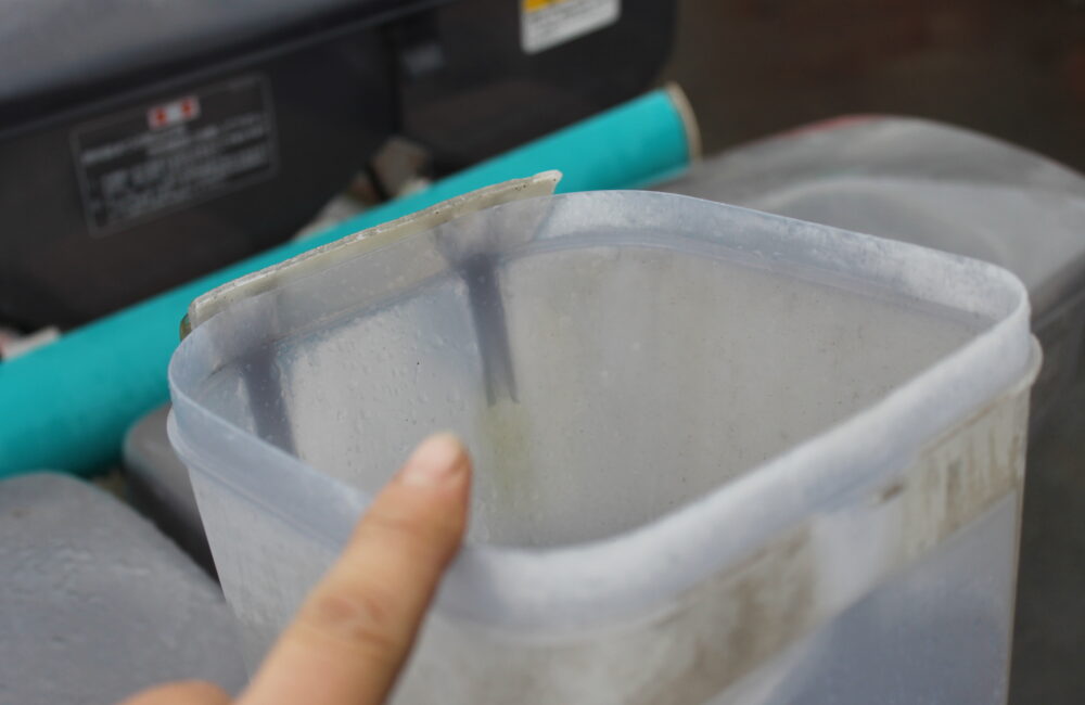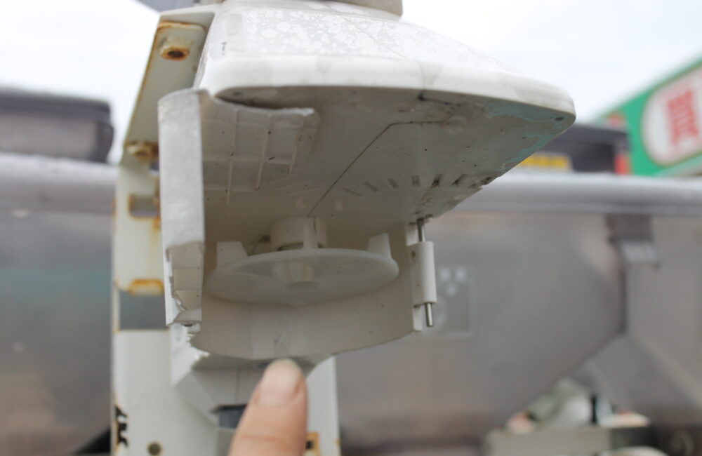 ●散布機のふた、サイドカバー欠損しています。