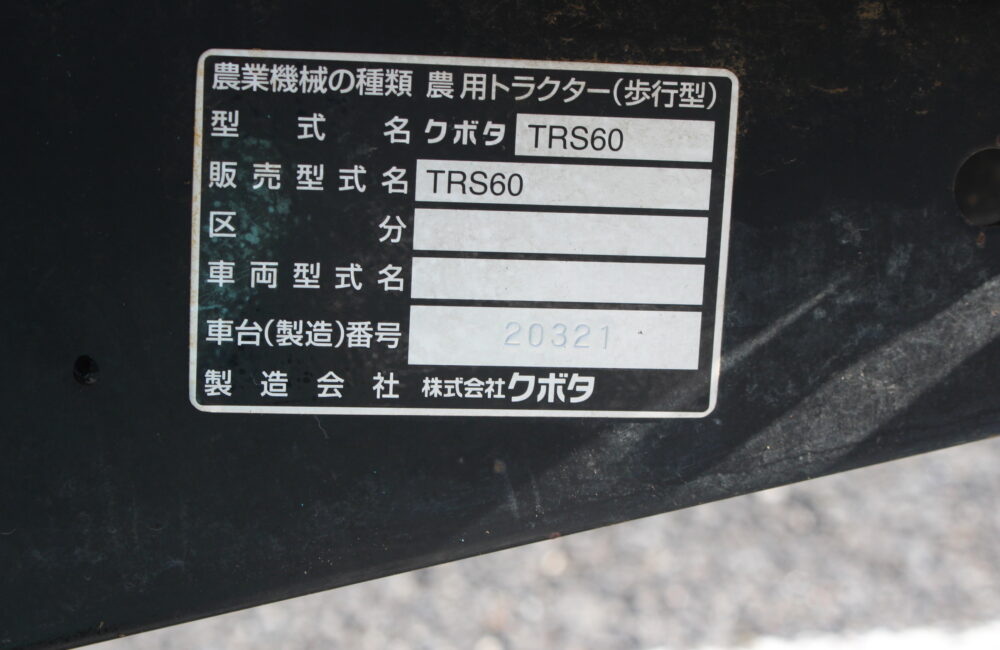 茨城発 クボタ 中古 管理機 TRS60