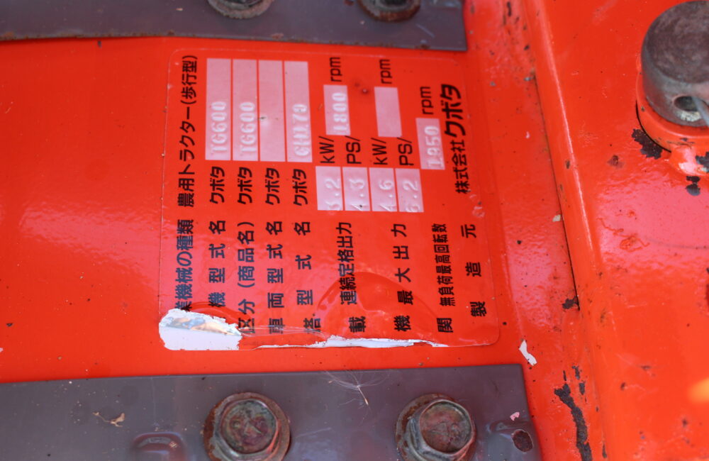 茨城発 クボタ 中古 テーラー TG600