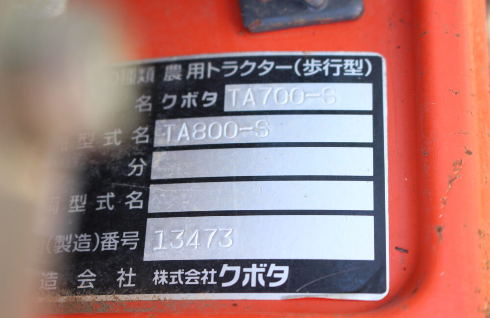 茨城発 クボタ 中古 管理機 TA800-S