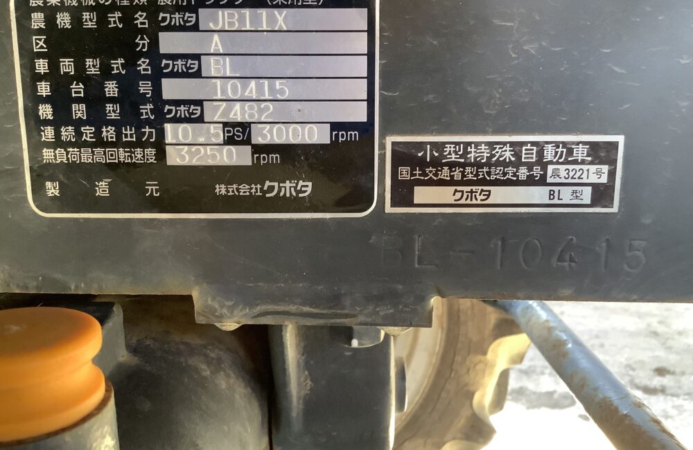 クボタ 中古 トラクター JB11X 空知